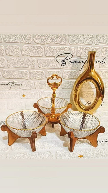 اردور خوری 3 تایی دسته طلا سلو با پایه چوبی
